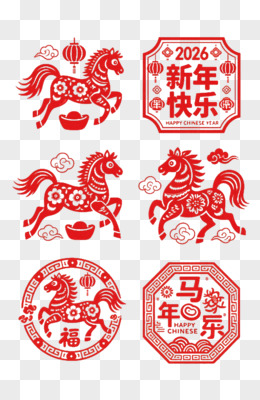 2026马年剪纸风贺岁图案合集