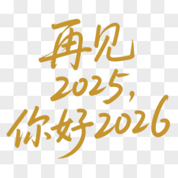 金色艺术字再见2025你好2026免抠元素