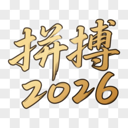 金色艺术字拼搏2026免抠元素
