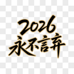 黑色金边艺术字2026永不言弃免抠元素