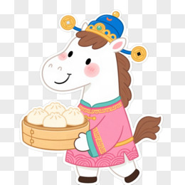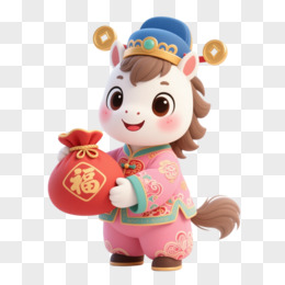 卡通戴着财神爷帽子的小马举着2026免抠元素