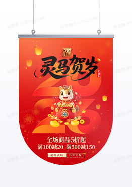 2026年创意艺术字2026马年灵马贺岁促销吊旗设计