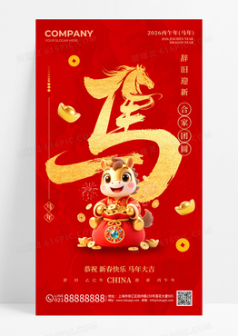 2026年马年新年海报红色 大气金马贺岁马年大吉