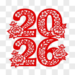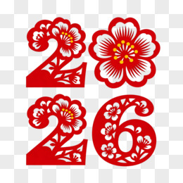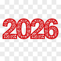 红色剪纸风数字2026艺术字