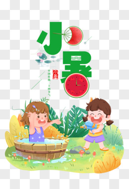 手绘卡通小孩们在梨边玩耍场景免抠素材