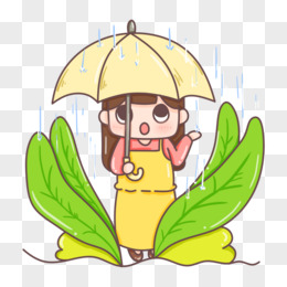卡通手绘少女雨季打伞免抠元素