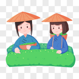 卡通手绘少女采摘谷雨茶场景元素