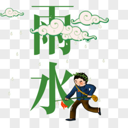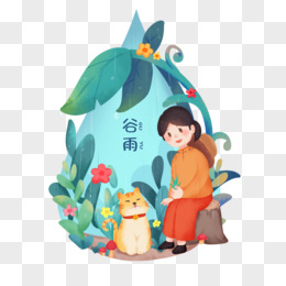 手绘卡通谷雨下雨躲雨场景免抠素材