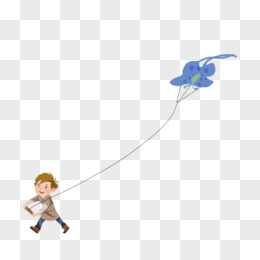 卡通手绘小男孩放风筝免抠素材