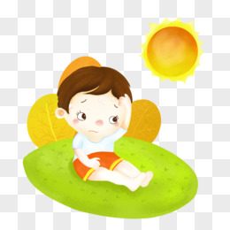 卡通手绘天气炎热小男孩中暑不适元素