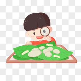 卡通小男孩观察蚕茧插画人物素材
