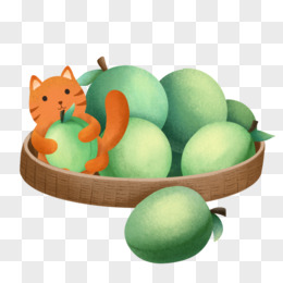 小猫咪吃青梅果子免抠元素