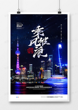 摄影简约乘风破浪浦东三十周年庆宣传海报设计