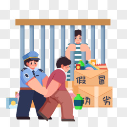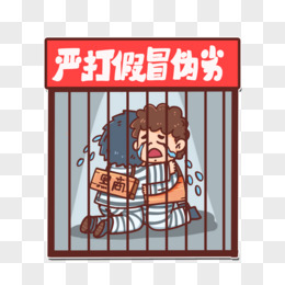 手绘生产售卖假货的商贩坐牢场景素材