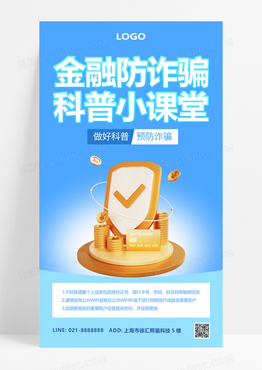 金融防诈防诈蓝色3d玻璃风广告宣传海报设计