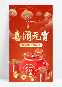 红色喜闹元宵餐饮促销ui手机长图元宵节长图 3D图