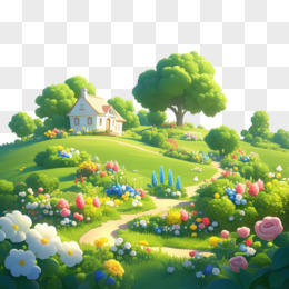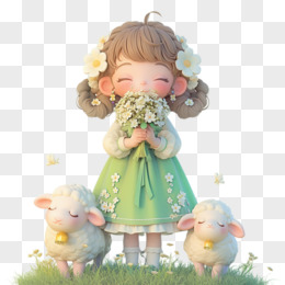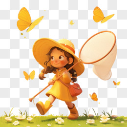 3D卡通几个小朋友在草地里奔跑免抠元素