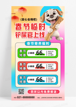 多巴胺3D潮流卡通春节宠物寄养上门喂养套餐海报