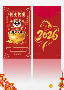 3D潮流可爱卡通红金色喜庆2026马年新年祝福红包