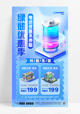 3D卡通风环保新绿色能源绿色电池免抠元素