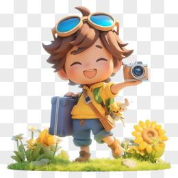 3D一个可爱的男孩躺在沙发上玩手机的免抠元素