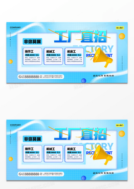 3D蓝色科技渐变工厂直聘招聘展板海报工厂招聘