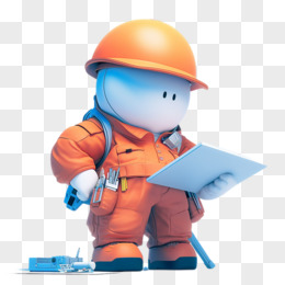 3D卡通建筑工人免抠元素