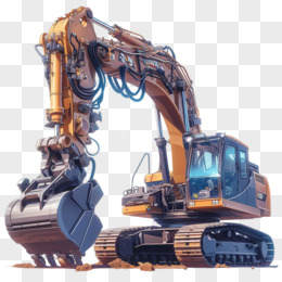 3D卡通风工地小元素黄色挖掘机免抠元素