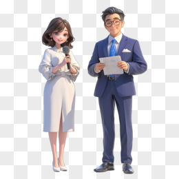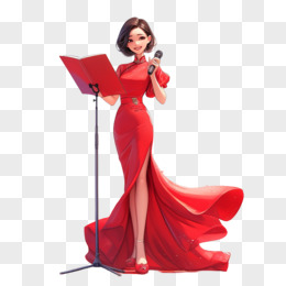3D立体穿着红裙的女主持人站在稿子旁免抠元素