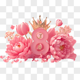 唯美鲜花金色皇冠粉色数字38妇女节艺术字