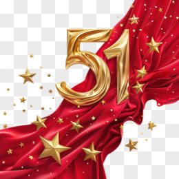 五一劳动节3D数字金色星星红绸创意免抠元素