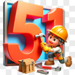 3D卡通风立体黄色建筑工人手拿锤子免抠元素