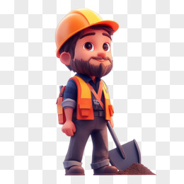 3D卡通建筑工人免抠元素