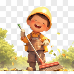 3D卡通环卫工人在清扫落叶免抠元素