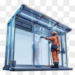 3D卡通环卫工人在清洁玻璃免抠元素