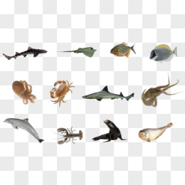 一组矢量膨胀风3D立体海洋动物元素合集章鱼