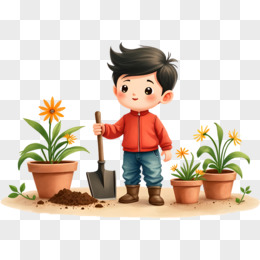 卡通手绘儿童节拿着气球的可爱男孩免抠元素