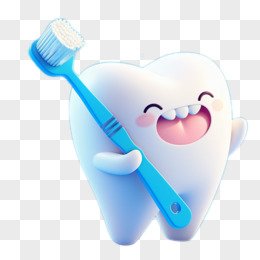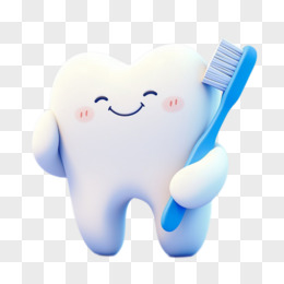 可爱的牙齿拿着牙刷3D模型免抠元素