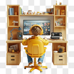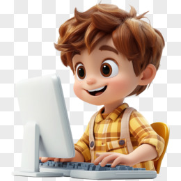3D立体电脑前玩游戏的可爱男孩免抠元素