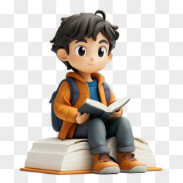 3D立体风格坐在书本上看书的可爱小学生男孩免抠元素