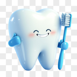 可爱的牙齿拿着牙刷3D模型免抠元素