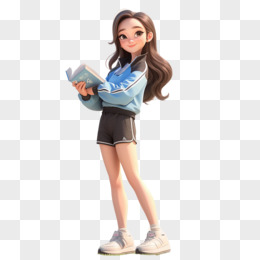 两个穿着校服的可爱小女孩背着书包去上学卡通3D元素