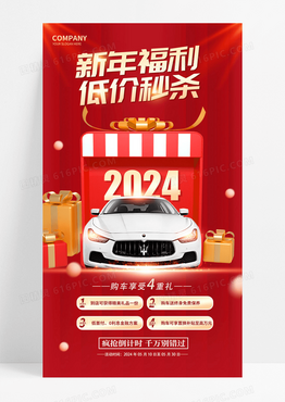 红色烫金风新年福利3d礼盒装汽车促销活动手机文案海汽车新年