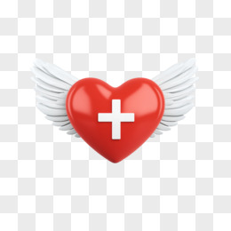 3D医疗标志红色爱心和白色翅膀免抠元素