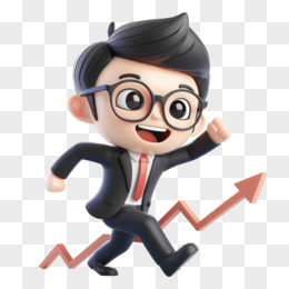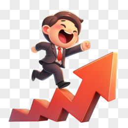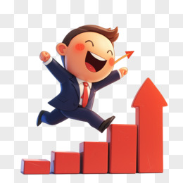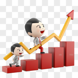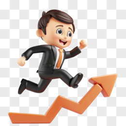 3D卡通一个系领带的办公人员沿着柱状图向上走免抠元素