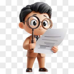 3D插画一个西装男人拿着放大镜看简历免抠元素