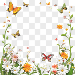 3D立体春天植物与昆虫边框免抠元素