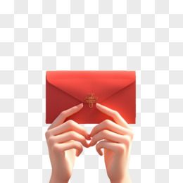 3D卡通新年装饰元素双手拿着一个红包免抠元素