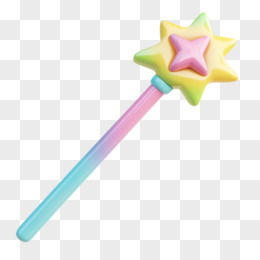 3D插画粉色彩色星星魔法仙女棒免抠元素