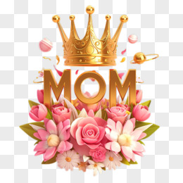 母亲节艺术字MOM皇冠鲜花创意3D元素